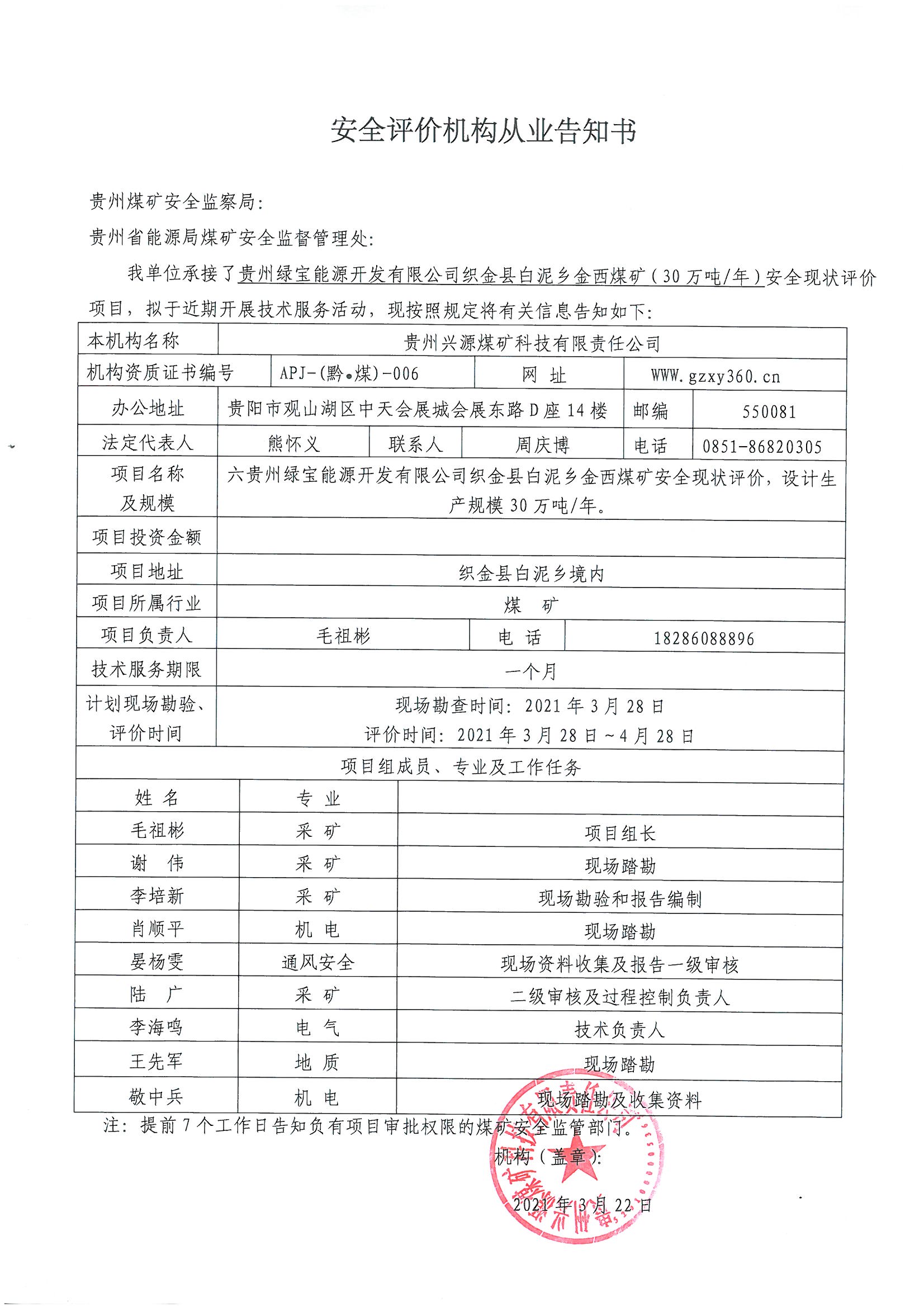 Notice of publicity