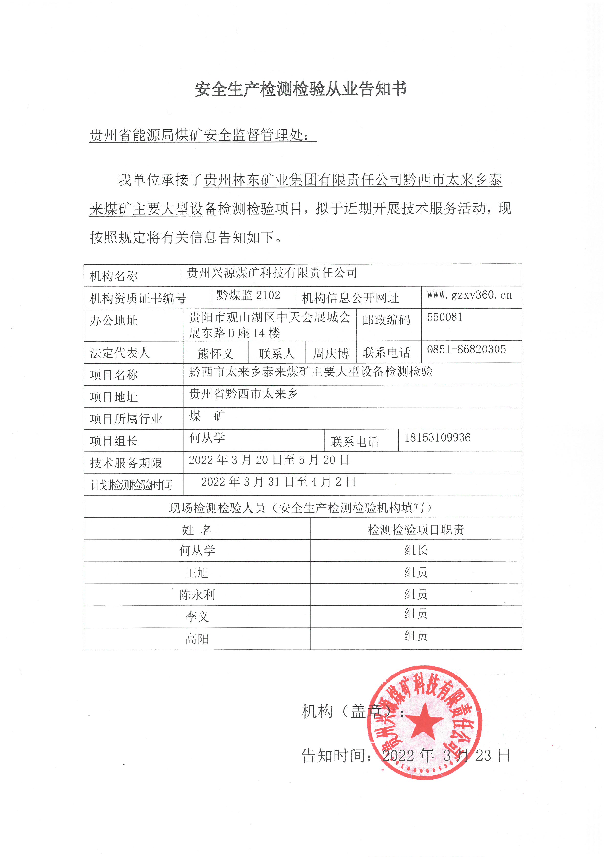 Notice of publicity