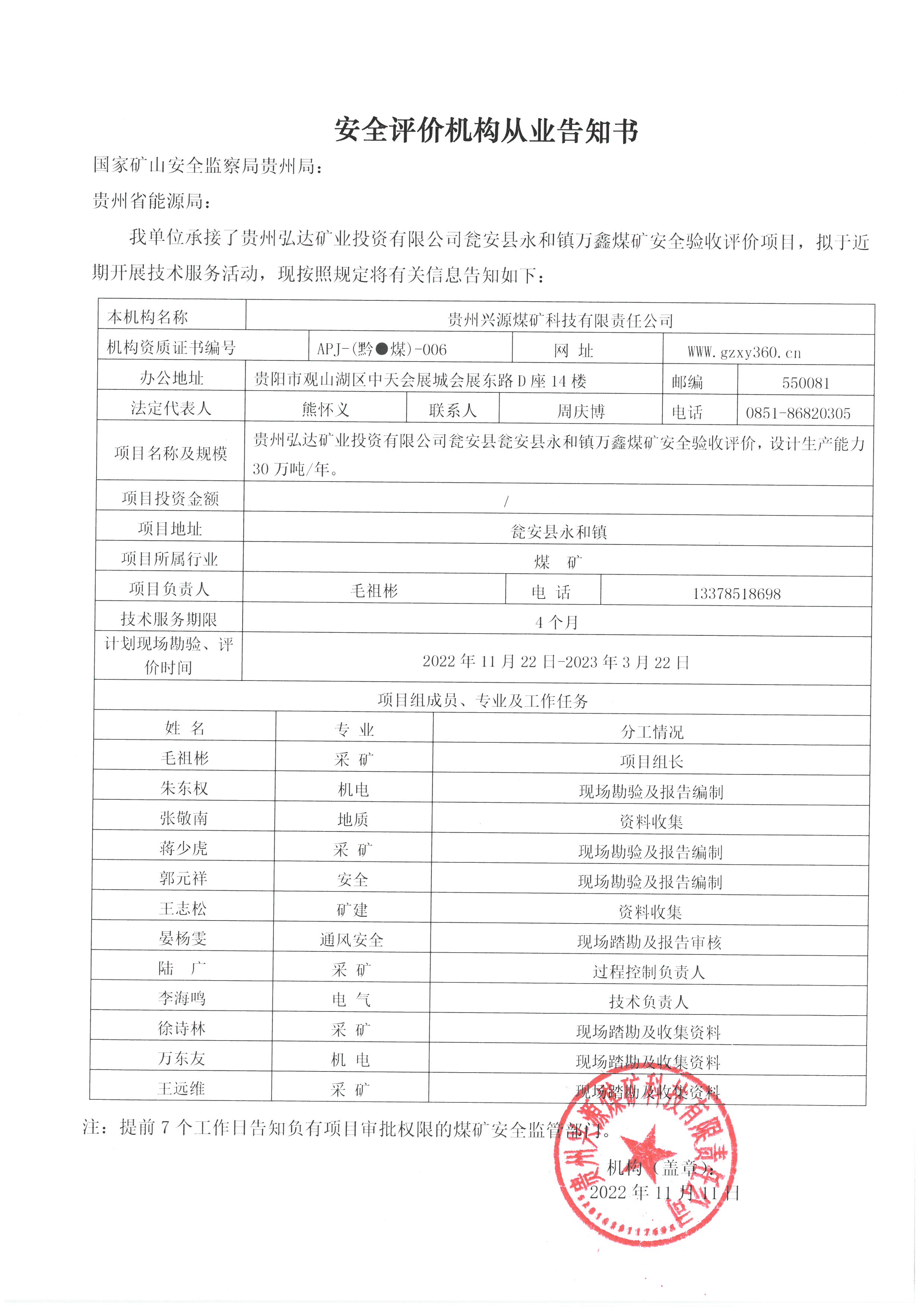 Notice of publicity