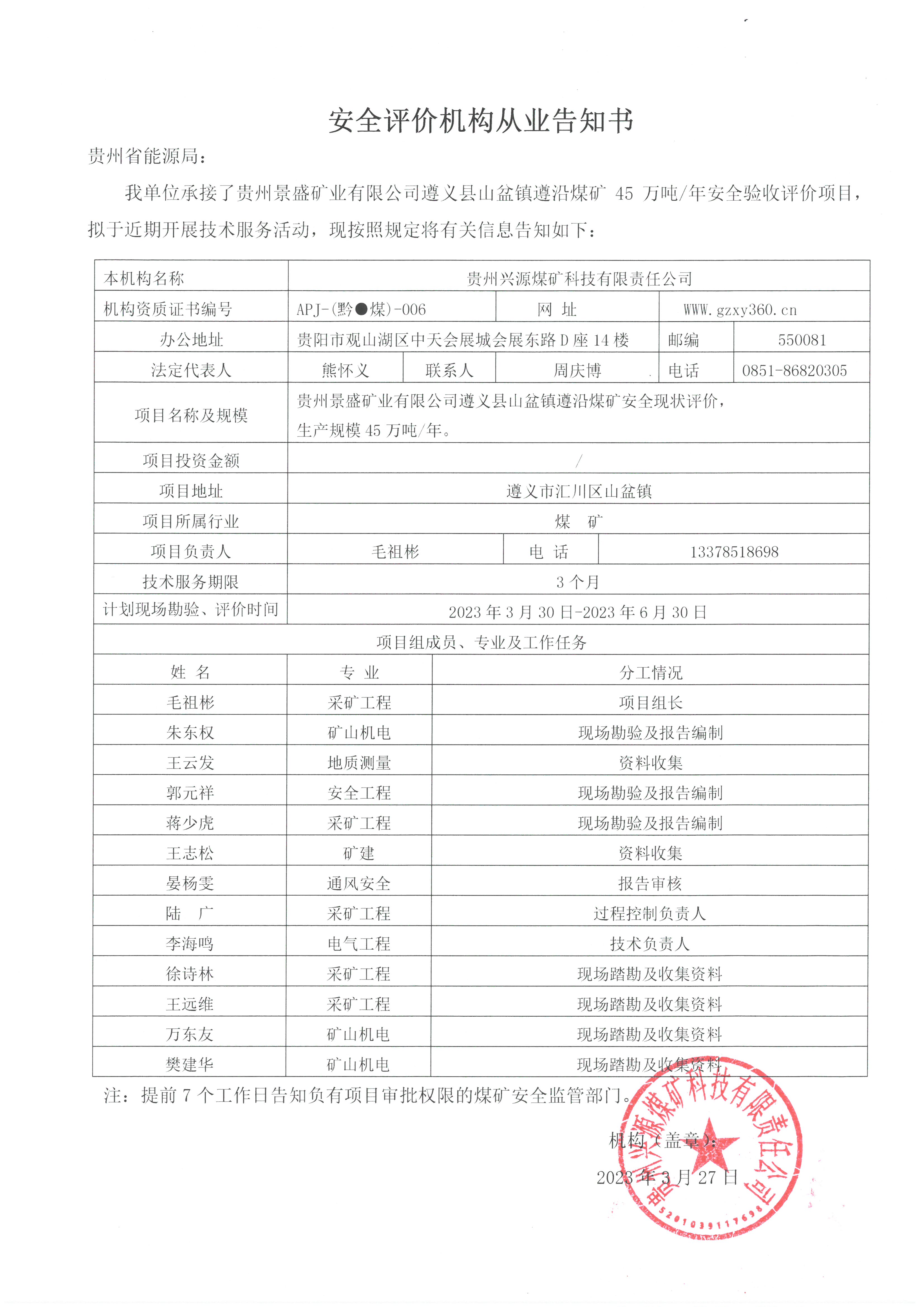 Notice of publicity