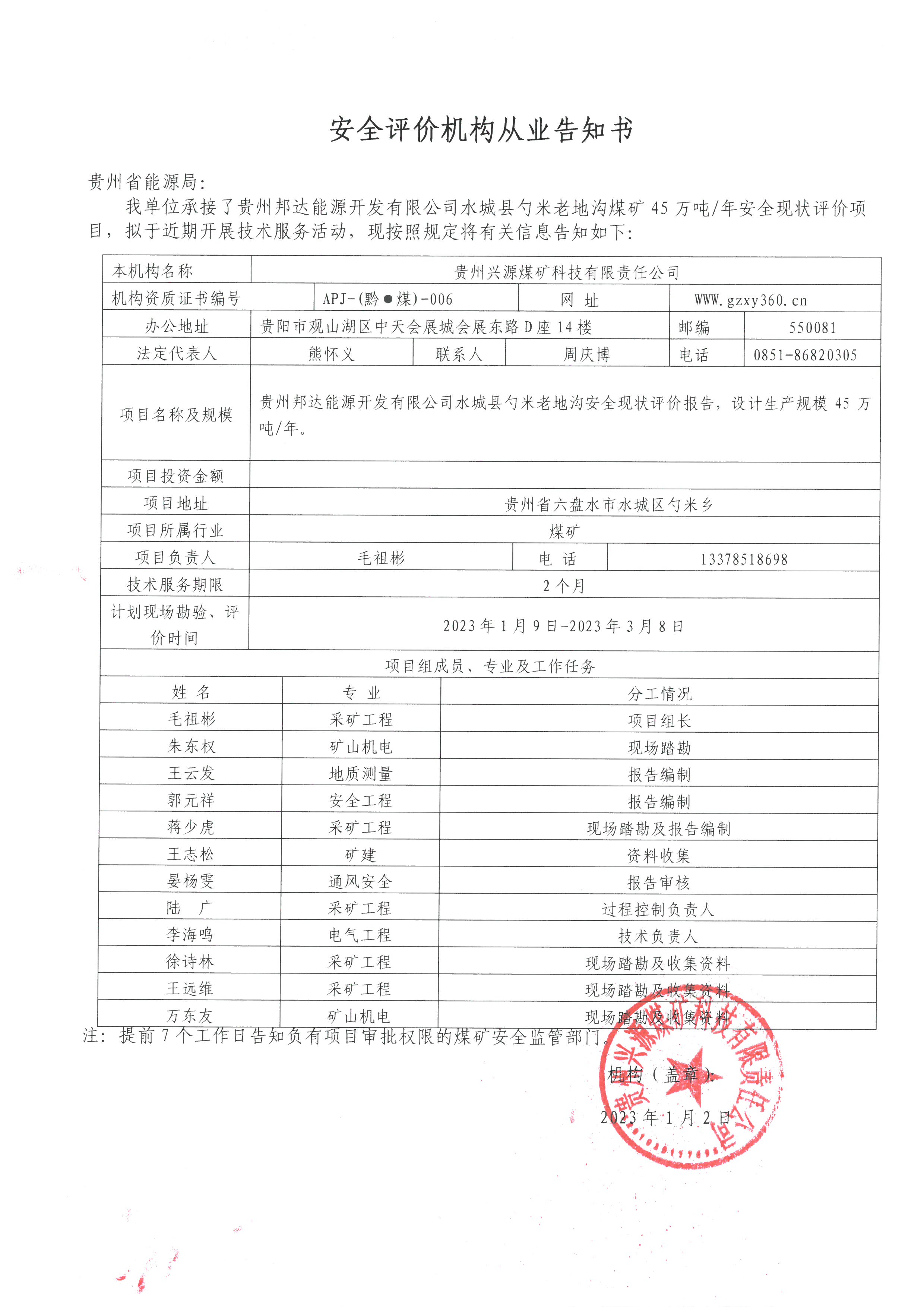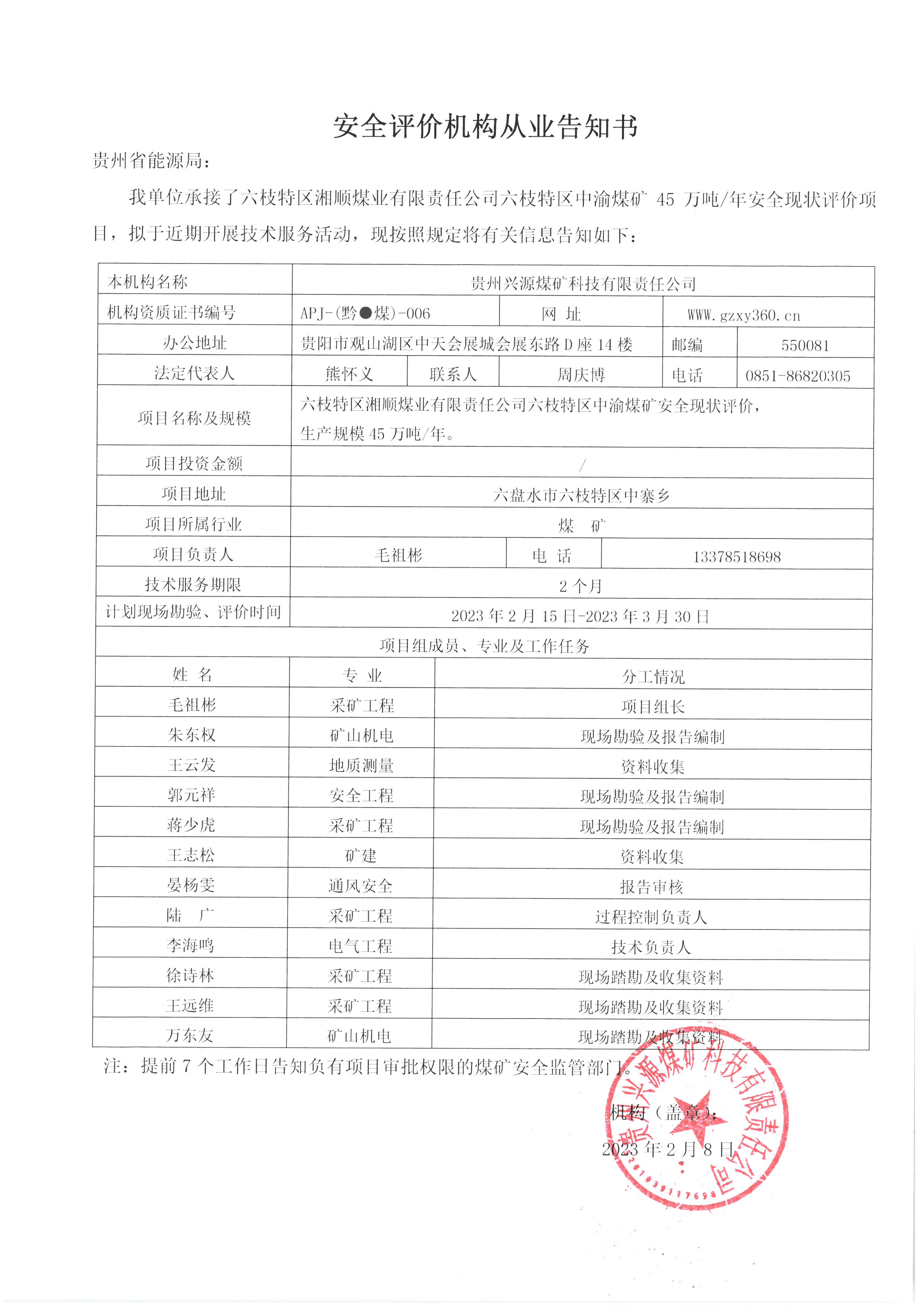 Notice of publicity
