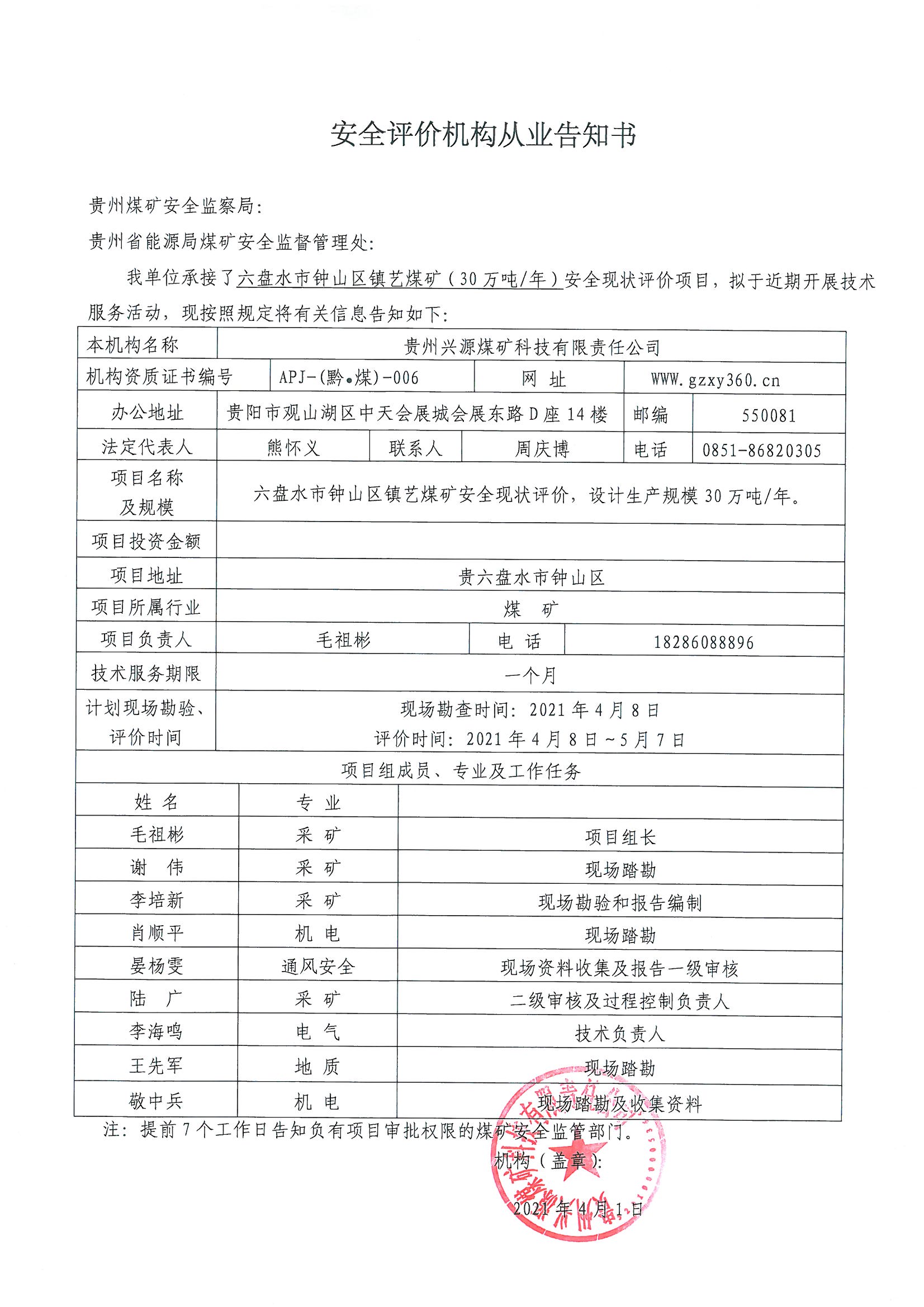 Notice of publicity