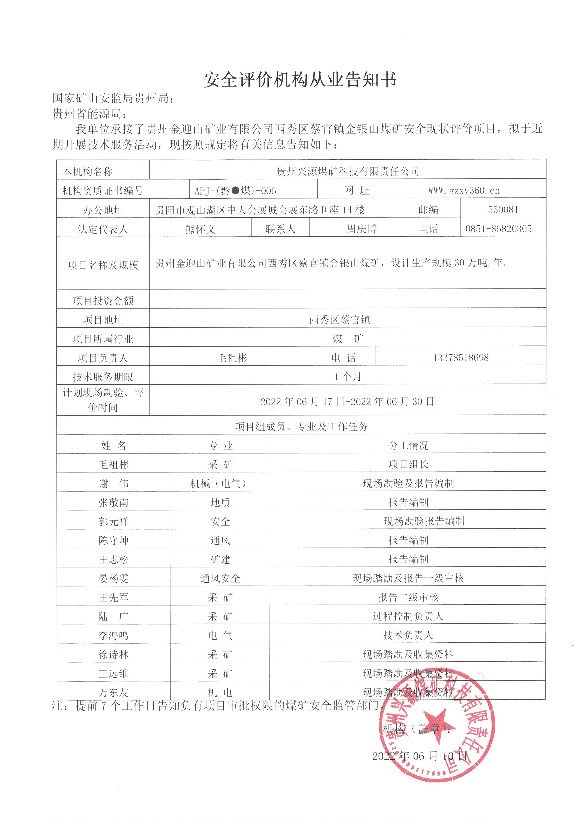 Notice of publicity