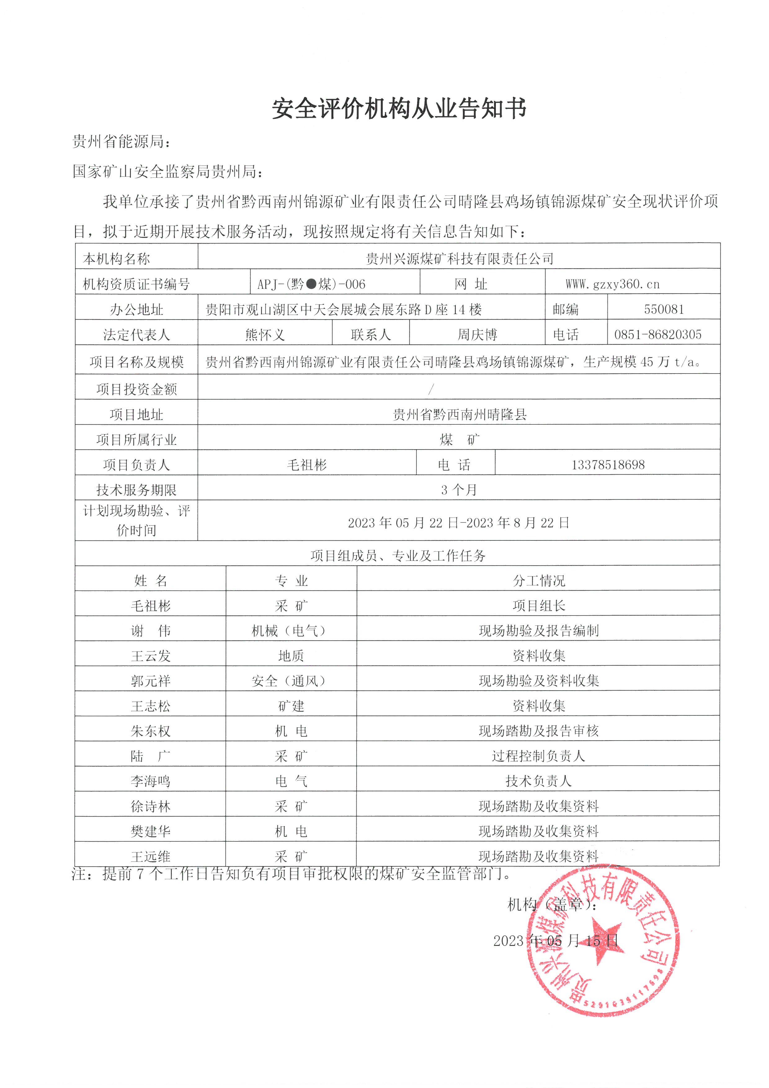 Notice of publicity